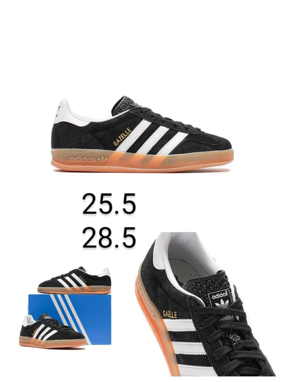 Tenis casual de gamuza, color negro con franjas blancas y suela color miel. Talla: 25.5 y 28.5