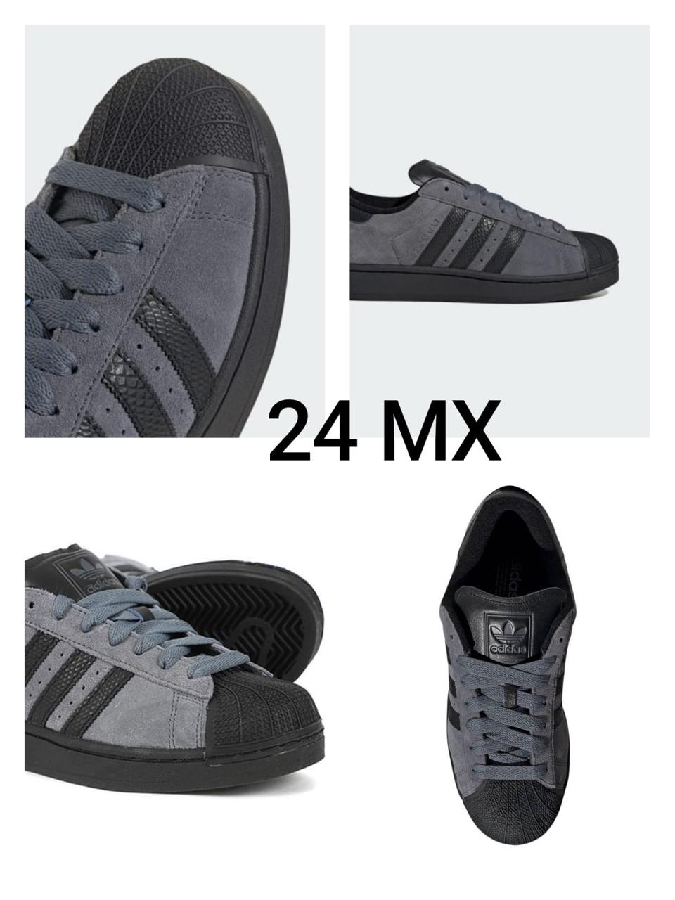 Tenis tipo clásico, gris con negro, talla 24 MX.