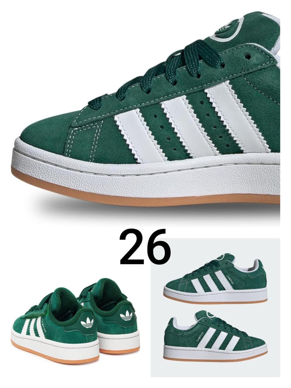 Tenis tipo clásico, verde con blanco y suela café, talla 26.